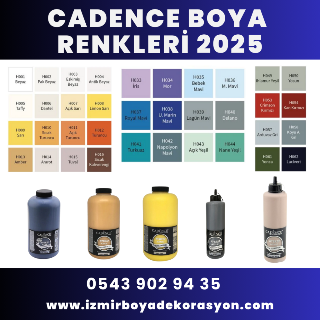 Cadence boya renk kataloğu, her türlü sanatsal ve dekoratif projelerinizde size geniş bir seçenek sunar. Yüksek kapatıcılığı, dayanıklılığı ve zararsız içeriği ile sanatseverlerin ve hobi tutkunlarının vazgeçilmezi olmaya devam ediyor.